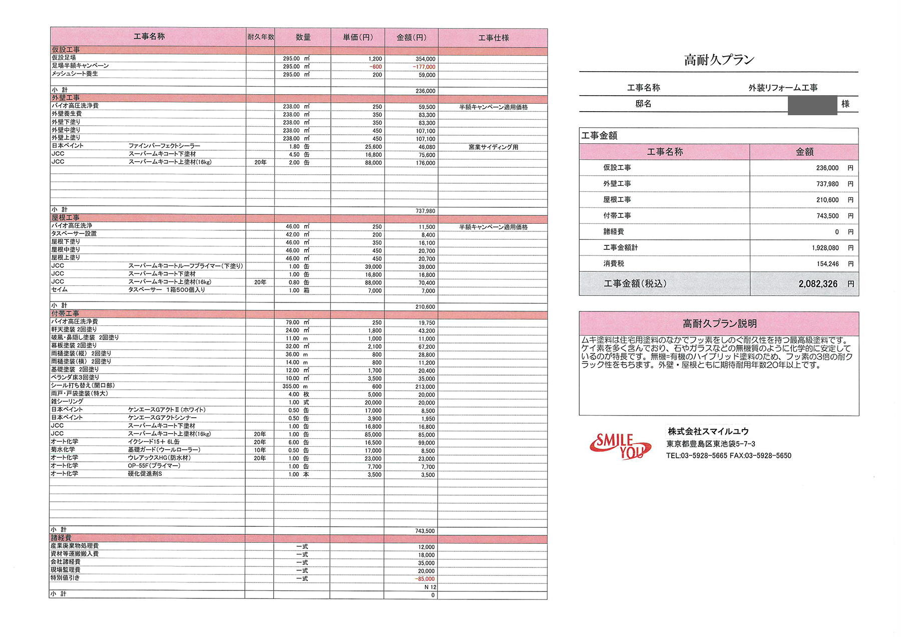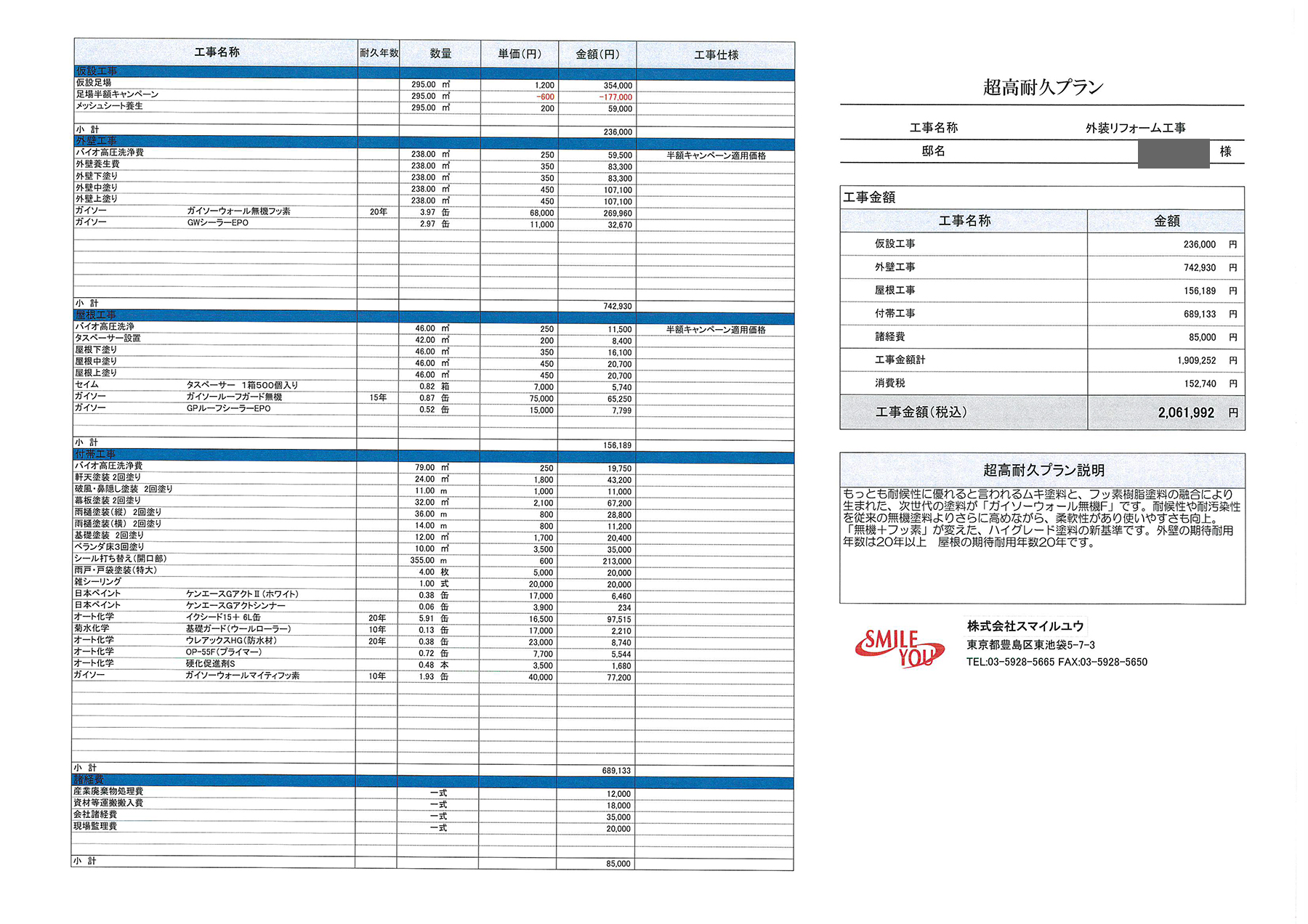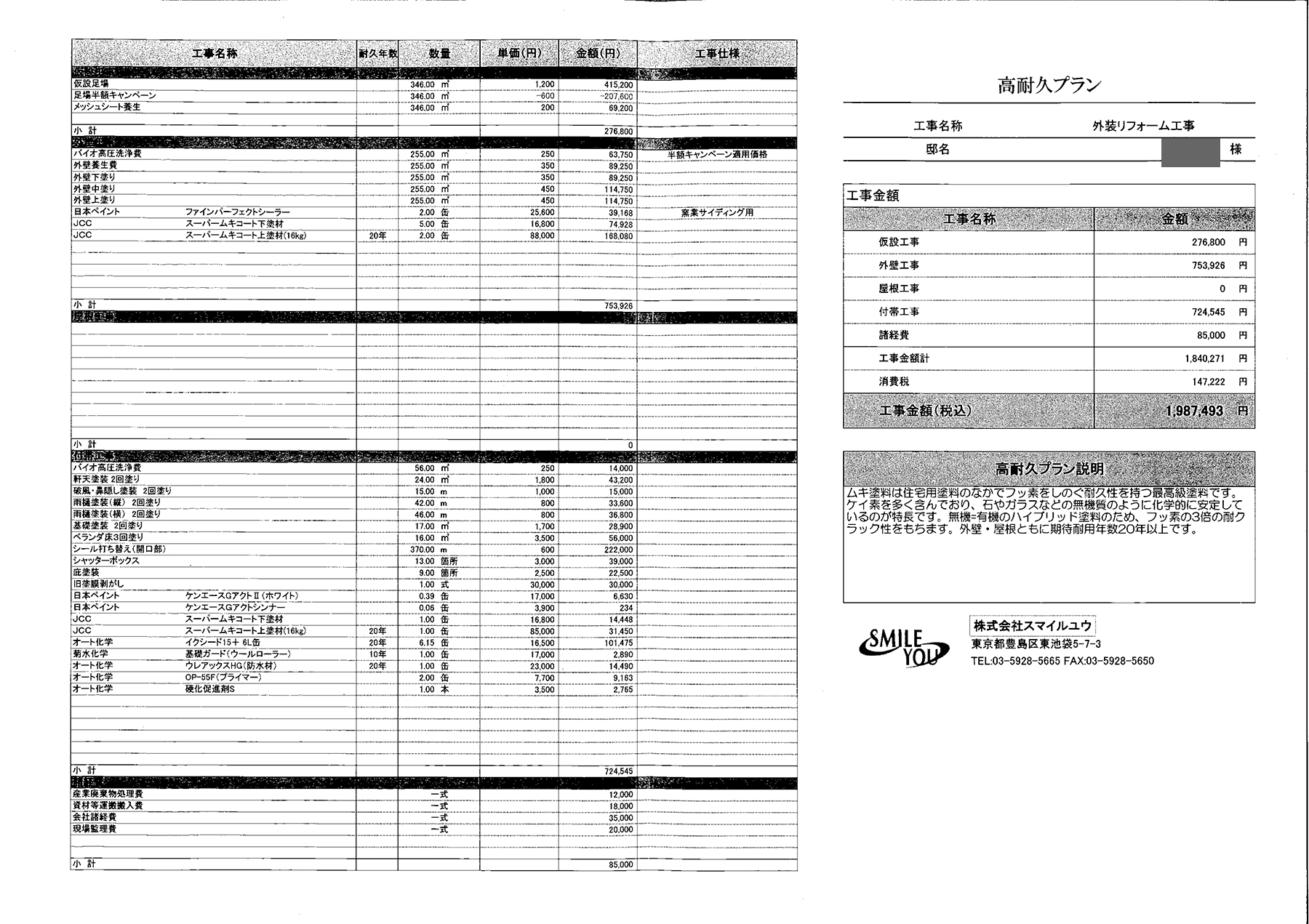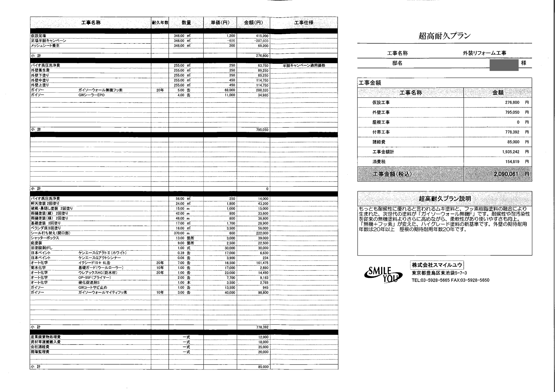 耐久の塗装のプランもご提案させて頂きました。