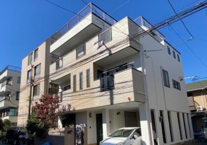 鉄骨ALC建物 外壁塗装 不燃シングル屋根塗装 外壁クラック補修 アルミ笠木 エポキシ樹脂シーリング注入 練馬区北町O様