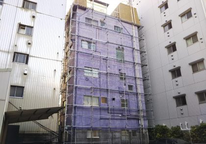 鉄骨ALC建物 劣化躯体樹脂モルタル補修 外壁塗装 クラックエポキシ樹脂注入補修 タイル貼り替え アルミ手摺笠木シール 豊島区東池袋Yビル