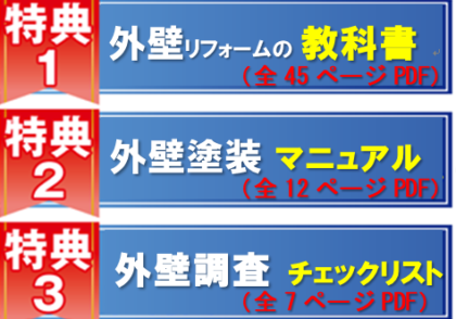 3つの特典プレゼント 防水リフォームの教科書PDF 防水工事マニュアルPDF 建物調査チェックリストPDF