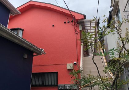 外壁塗装と屋根塗装工事 白い外壁から鮮やかなピンク色になりました